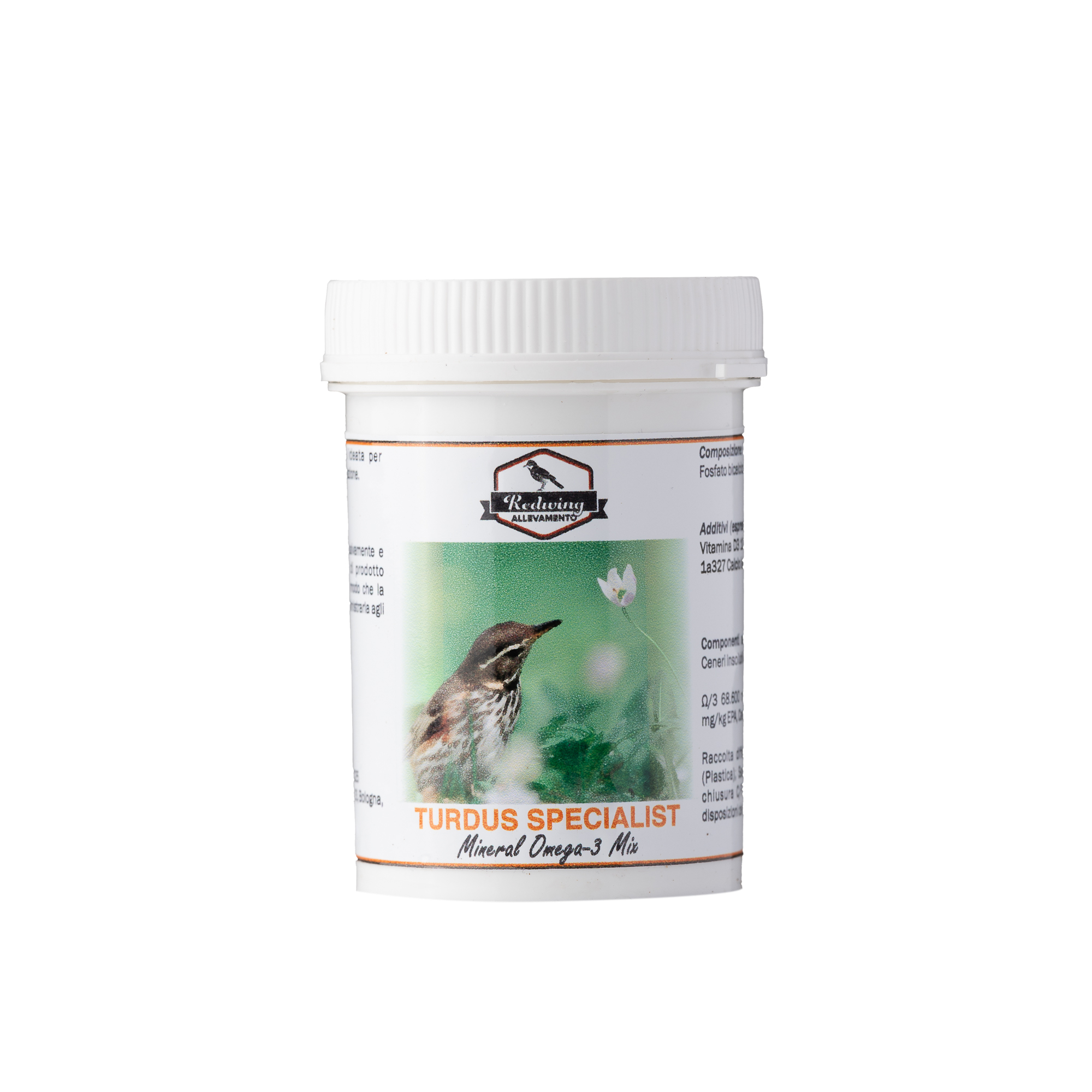 Le produit contient également de l’huile de poisson, obtenue par pressage du saumon entier, avec une teneur élevée (18 %) en acides gras oméga-3 (EPA 4,5 % ; DHA 13,5 %). Ces acides gras, grâce à leur effet antioxydant bien connu, remplissent des fonctions très importantes pour la santé des oiseaux en assurant un meilleur plumage (amélioration de l’aspect de la peau et du plumage), mais surtout en stimulant les fonctions immunitaires des jeunes turdidés, les mettant ainsi dans les meilleures conditions pour résister à divers agents pathogènes. Les acides gras oméga-3 soutiennent également les fonctions reproductives des oiseaux.